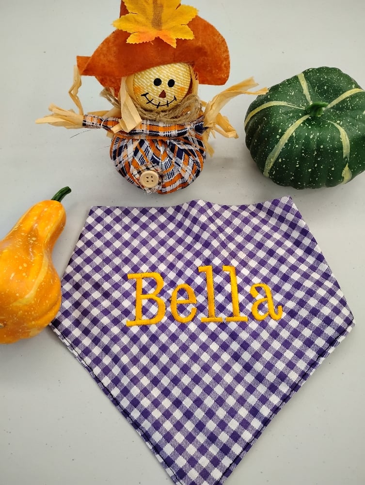 You have the option to chose from our stock or you can have them customized with your fur baby name in beautiful embroidered letters.