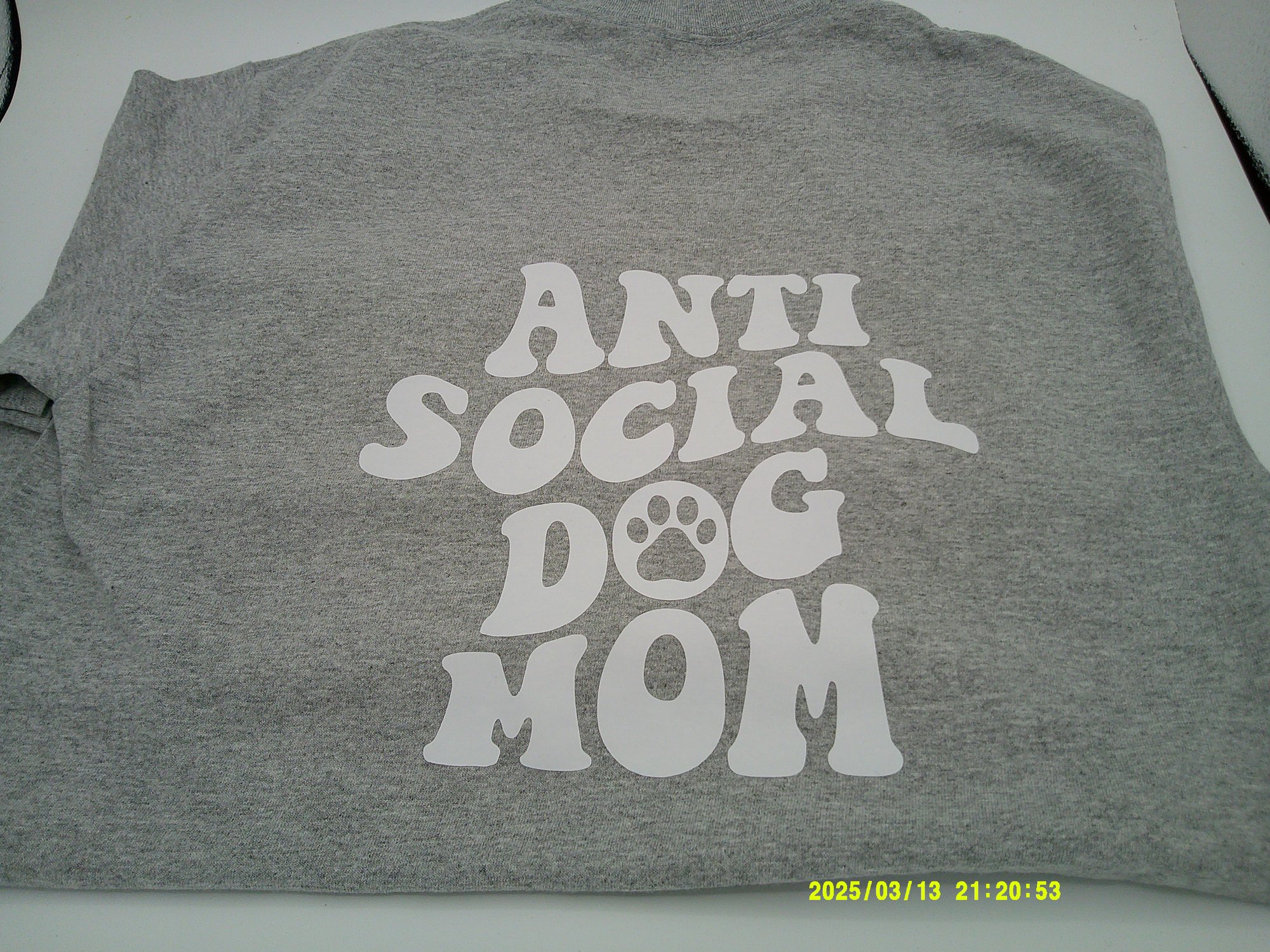 Grey shirt with white letters