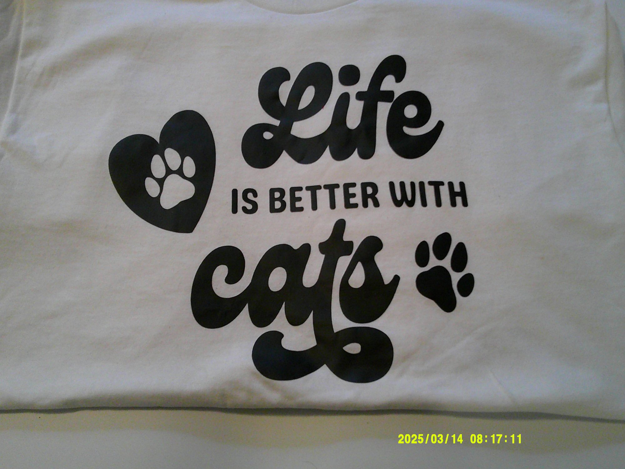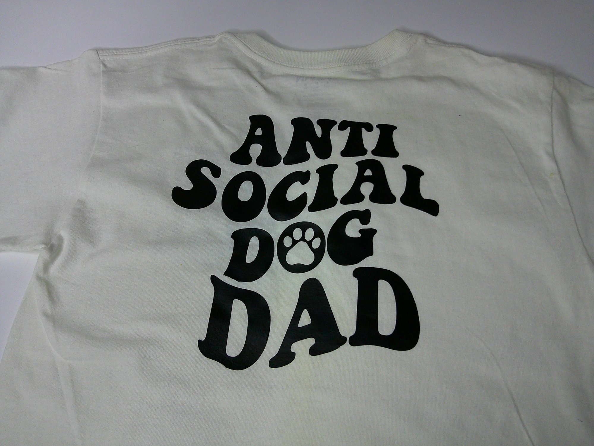 White shirt with black letters