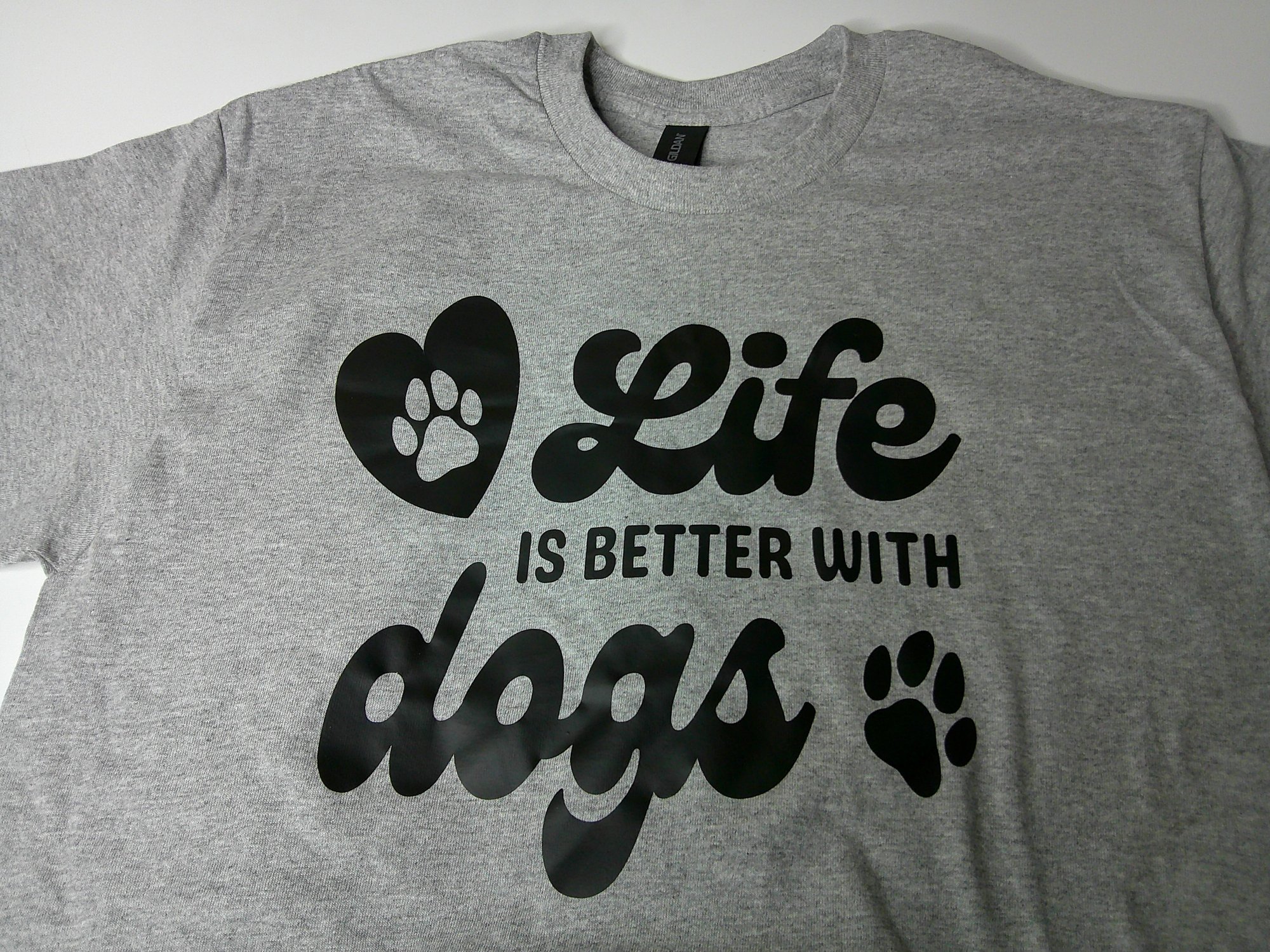 Grey shirt with black letters